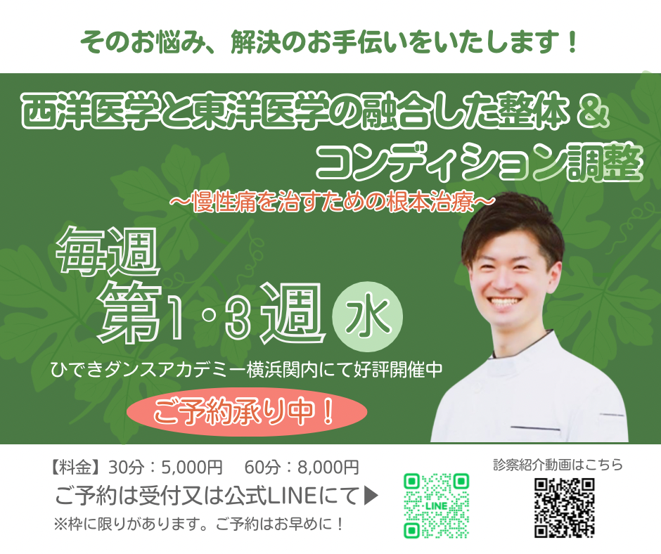 ひできダンスアカデミーにて、毎月第1・3水曜日に施術開催しております!