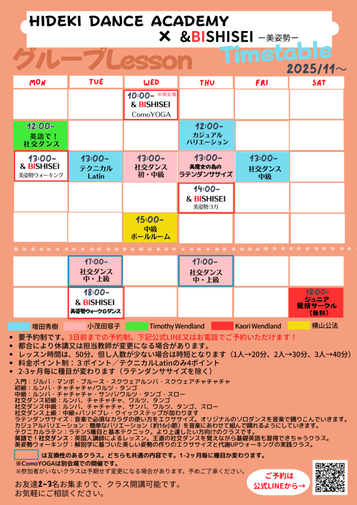 ★2025.11月~グループレッスンスケジュール ★